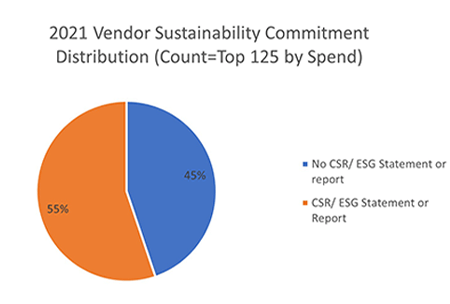 - Of the top 125 suppliers, those that publicly report their sustainability performance account for ~29% of the total spend, an increase of 3% compared to the last assessment.